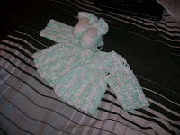 Esse casaquinho foi a receita da lindinha do blog Agulhas Coloridas, ficou uma graça mesmo pena que ainda não tenho filhos, e o sapatinho eu mesma inventei.